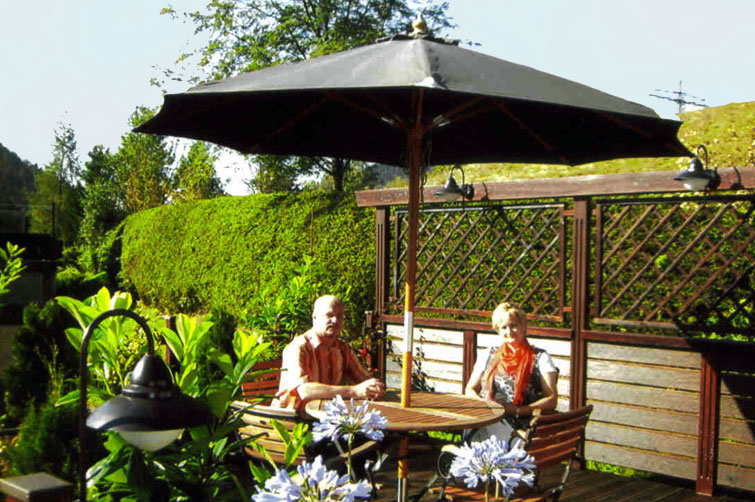 Genießen Sie auf unserer Sonnenterrasse die Ruhe des Moosbach-Tals.